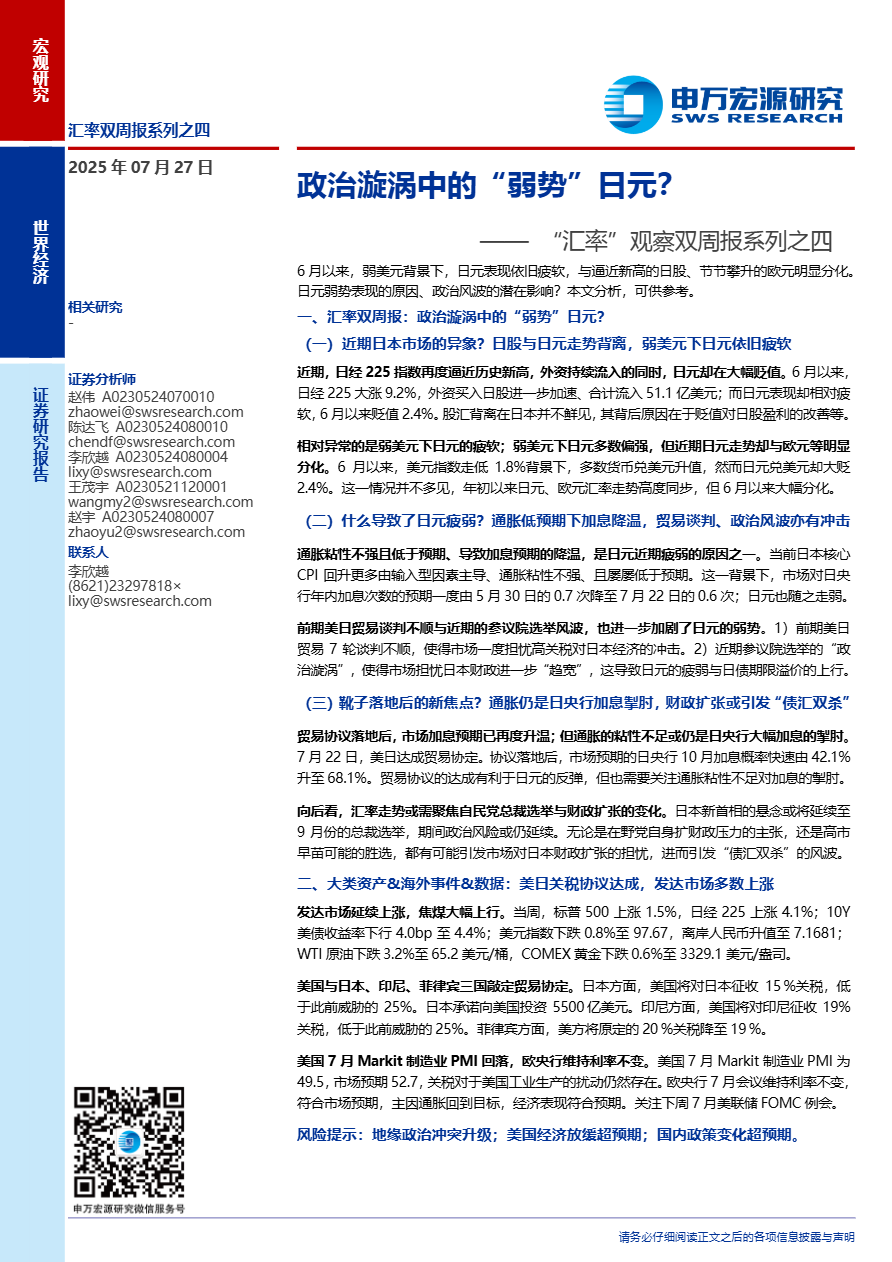 《政治漩涡中的“弱势”日元?——汇率”观察双周报系列之四》